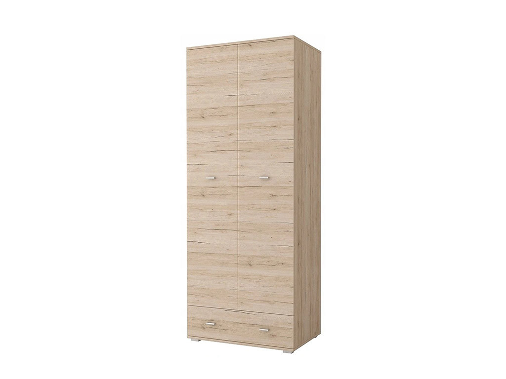 Шафа Grenada від польської фабрики Id czak (Ічак). Корпус і фасад виготовлені з ламінованої ДСП завтовшки 16 мм, у кольорі "дуб Сан Ремо пісочний", краї повністю покриті шпоном ПВХ. Срібні ручки із пластику.